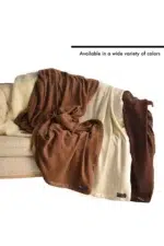 Indulge your every fantasy and rest with the sweetest of dreams, when you slumber in this cashmere blanket. Only when 100% pure cashmere touches your skin, will you know the meaning of true luxury. This bedroom treasure is a versatile double-sided blanket, neatly trimmed with a silk edge. Hand loomed in Nepal, this King size blanket measures 90″ x 108″ and is made with 100% pure 4 ply cashmere yarn, and weighs 3.5 lbs.