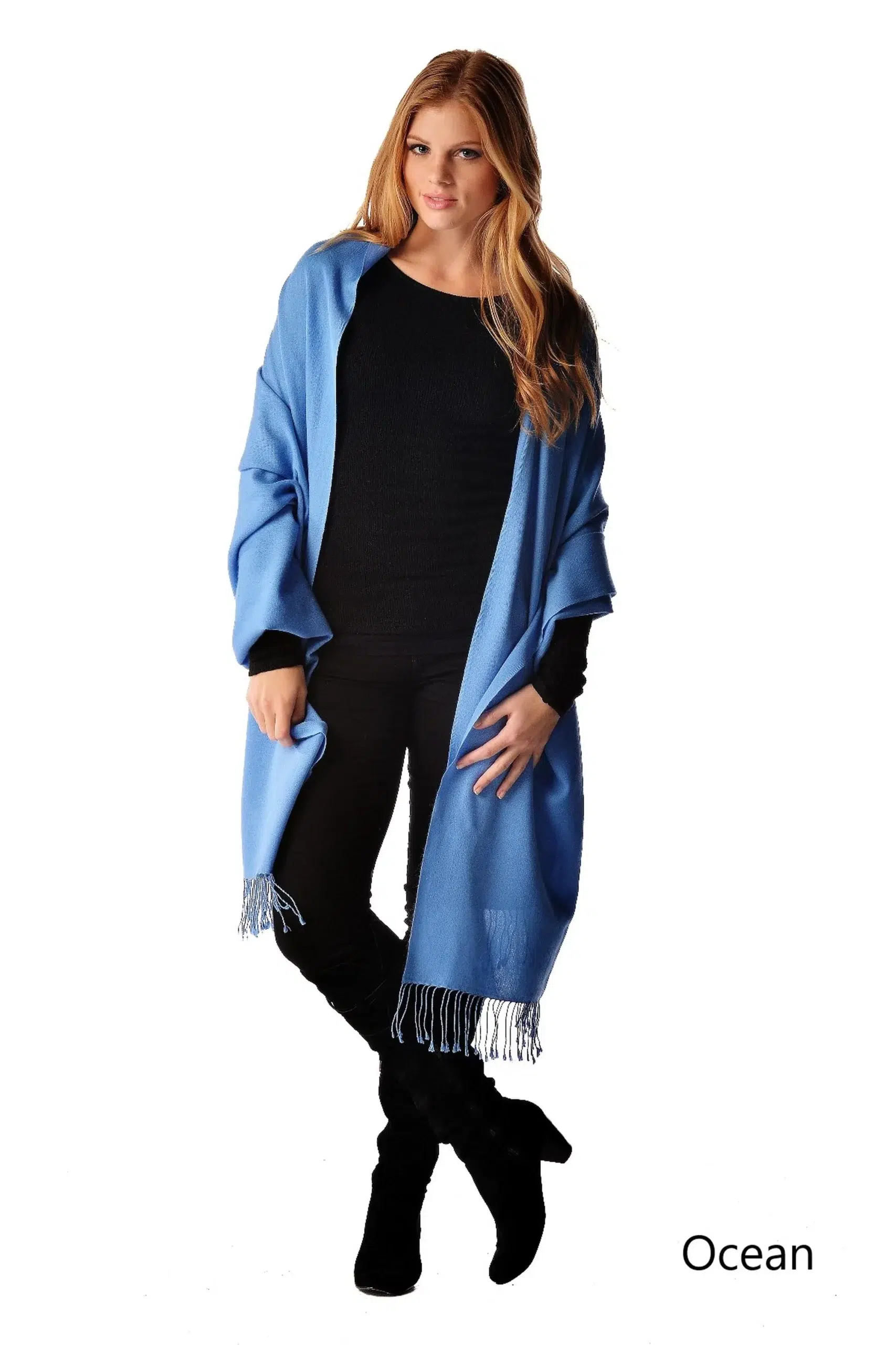 Superb quality pashmina shawls, at fantastic prices. These shawls measure 36 inches x 80 inches, and are made with a blend of 70% cashmere and 30% silk in 2 ply. These shawls have 3 inch tassels at both ends.